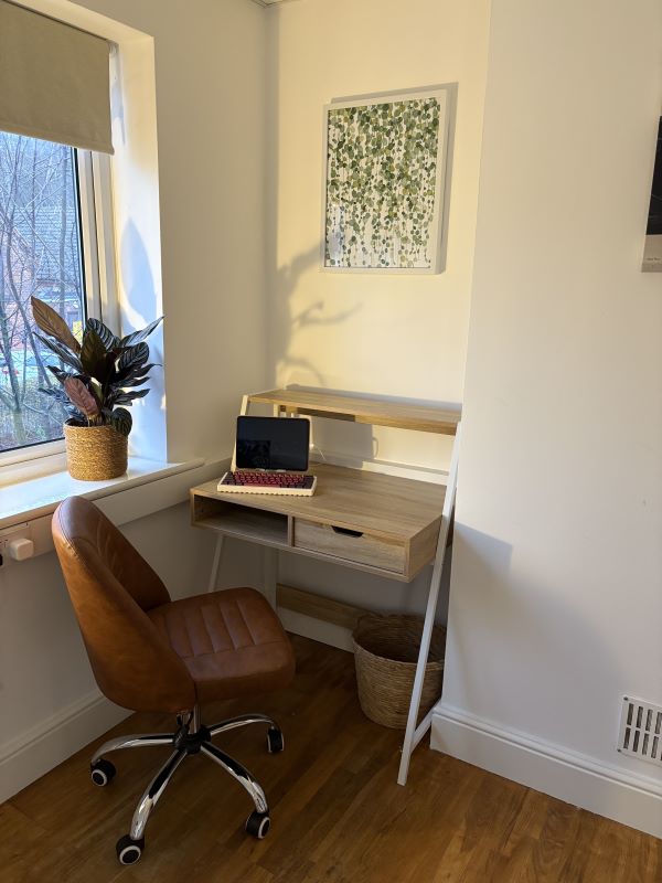 Therapy room available, which is most suited to talking therapies. This room is situated in the Maltings business centre, in its own private unit. There is a small kitchen available for use and free parking for you and clients. The Maltings also has a cafe on site. In the room there is WiFi and a desk area, ideal for online calls and admin work.